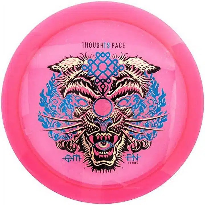 The Thought Space Athletics Omen is a highly overstable 9-speed driver designed for players seeking reliable performance in various throwing styles, including forehand, backhand, and overhead. With flight ratings of Speed 9, Glide 4, Turn 0, and Fade 4, the Omen ensures a consistent, strong fade, making it an excellent utility disc for advanced and power throwers.